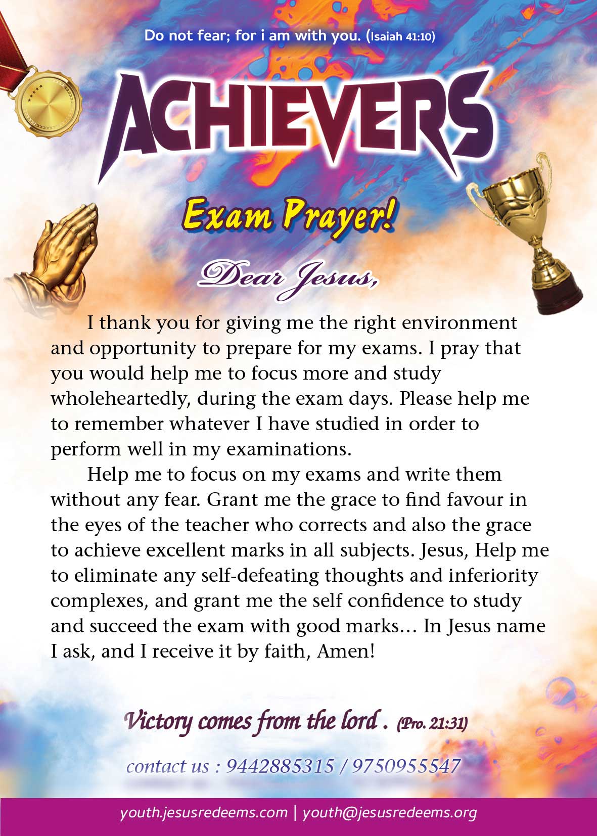 Exam Prayer Card – EnglishBy jeevin [featured_image] Download Download is available until [expire_date] Version Download 4651 File Size 233.20 KB File Count 1 Create Date 23/04/2022 Last Updated 02/05/2022 Exam Prayer Card - English